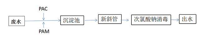 根据本项目污水的水质特点及我公司在类似污水处理工程中的实践经验,保证出水达到处理要求,确定工艺为:废水+PAC+沉淀池+新斜管+次氯酸钠消毒+出水。